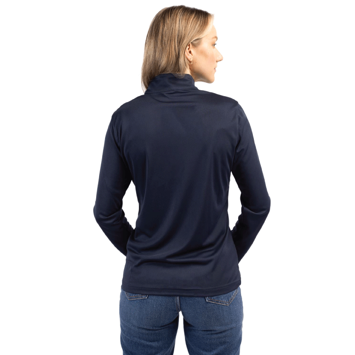 The Clique Spin Eco Performance Half Zip Women's Pullover is a comfortable, durable, and eco-friendly garment made from 100% spin-dye polyester. It features UPF 50+ sun protection, moisture-wicking fabric, and is made without PVCs or PFAS. The spin-dye process uses 90% less water and fewer chemicals.