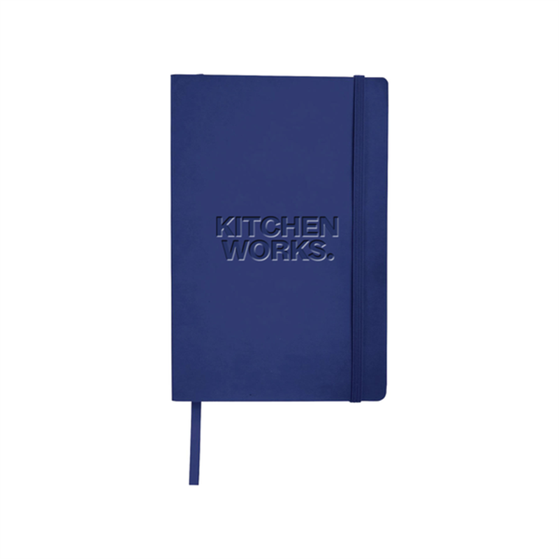 The FSC® Mix Pedova™ Soft Bound Journal features a flexible cover made from luxurious Italian UltraHyde materials. It closes using a built-in elastic band and opens to reveal 80 sheets of FSC® Mix lined paper, perfect for note-taking, list-making, jotting down ideas and more. This compact 8.0'' H x 5.5'' W notebook contains a convenient built-in page marker and features a document pocket inside its interior back cover. Features debossed Kitchen Works logo.