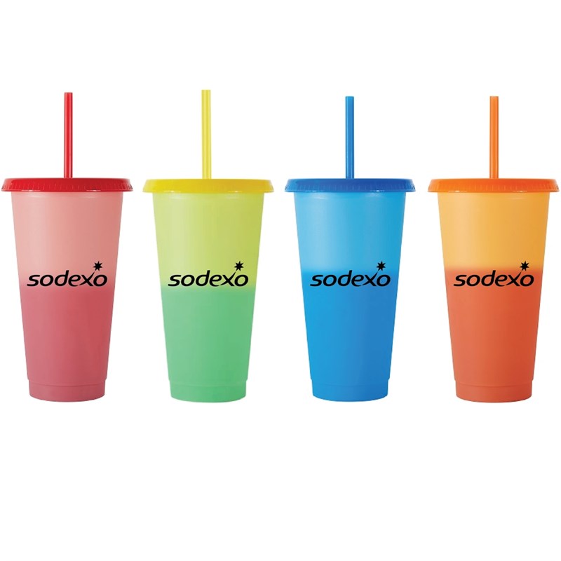 - Changes color when you add ice or cold beverages. When the temperature regulates, the cup returns to its normal shade